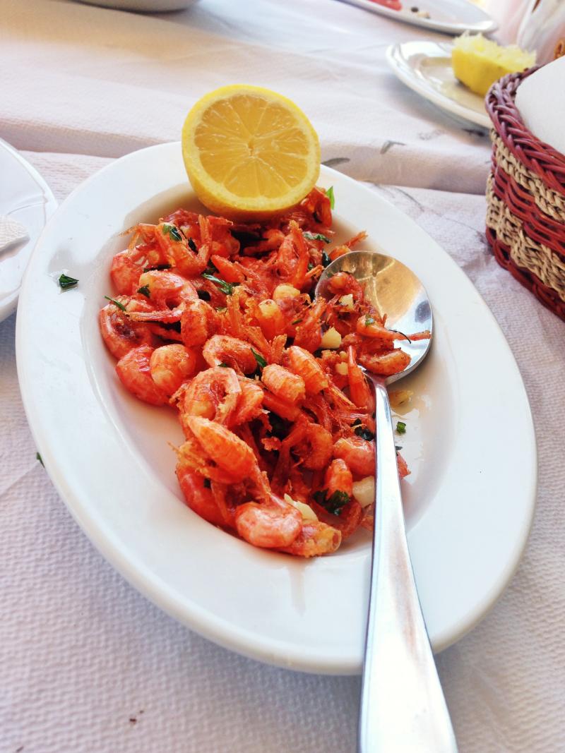 Merkezden Caravelle’e sahil boyunca yürüyerek yaklaşık 20 dakikada ulaşılıyor. Burası Fatma Hanım ve eşinin sahibi olduğu tam denizin kenarında mavi beyaz örtülü bir taverna. Sahipleri Türk olduğu için bazı garsonlar da çat pat Türkçe konuşuyorlar. Çok abartmamaya çalışarak uzo eşliğinde Greek Salad, Simi karidesi, kalamar tava ve midye yedik ve hepsi çok güzeldi. Daha birçok çeşit mezeleri vardı ama bizim balık yiyecek bile halimiz kalmadığı için onları bir sonraki sefere bıraktık.