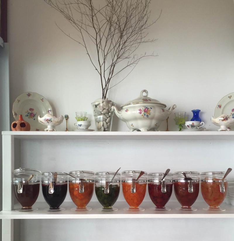 Ev yapımı reçellerle kaldığımız otelde karşılaştık öncelikle. Çeşit çeşit, renk renk. Seçim yapmak haliyle zor olunca masamız da renklendi. Bu enfes ev yapımı reçelleri Bozcaada'nın içinde sürpriz şekilde karşınızda bulabilirsiniz. Bazen küçük bir atölyenin önünde açılan tezgahta, bazen yanı başınızdaki masada. Benim tercihlerim akasya ve gelincik oldu ancak domates ve incirin de namı almış yürüyor.