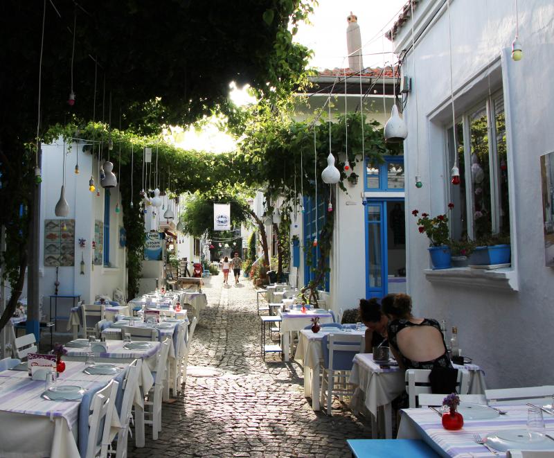 Muazzam Ege mutfağını en leziz haliyle bulabileceğiniz duraklardan birindeyiz. Rum ve Türk mahallelerinde yer alan restoranlar güzel ve geniş menüleriyle iştahınızı kabartmaya hazır.