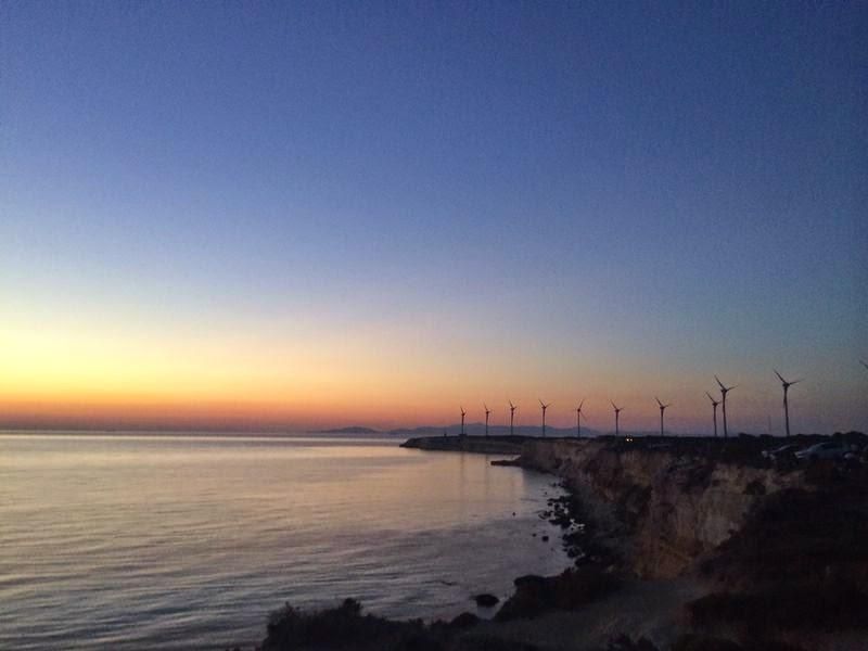 Bu zaten adanın olmazsa olmazı… Günbatımında büyük bir olay yok, güneşin 8 dakika önceki haline bakıp "Bildiğin günbatımı bu. Bzc'de farklı olur diye düşünmüştüm, hani temiz hava falan? Yoksa ben mi güzelliği takdir edemiyorum. Arkadaşlardan da olumlu/olumsuz ses yok. Neyse, biraz da rüzgâr tribünlerine bakayım." diye düşündürebilen bir manzara. En azından bende böyle oldu. Bence güneş battıktan sonra daha güzel oluyor.
