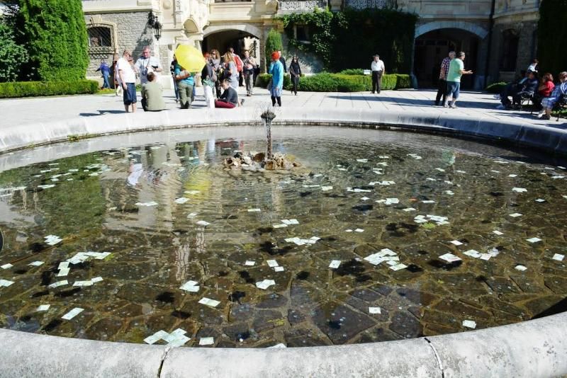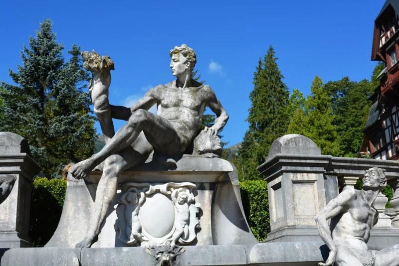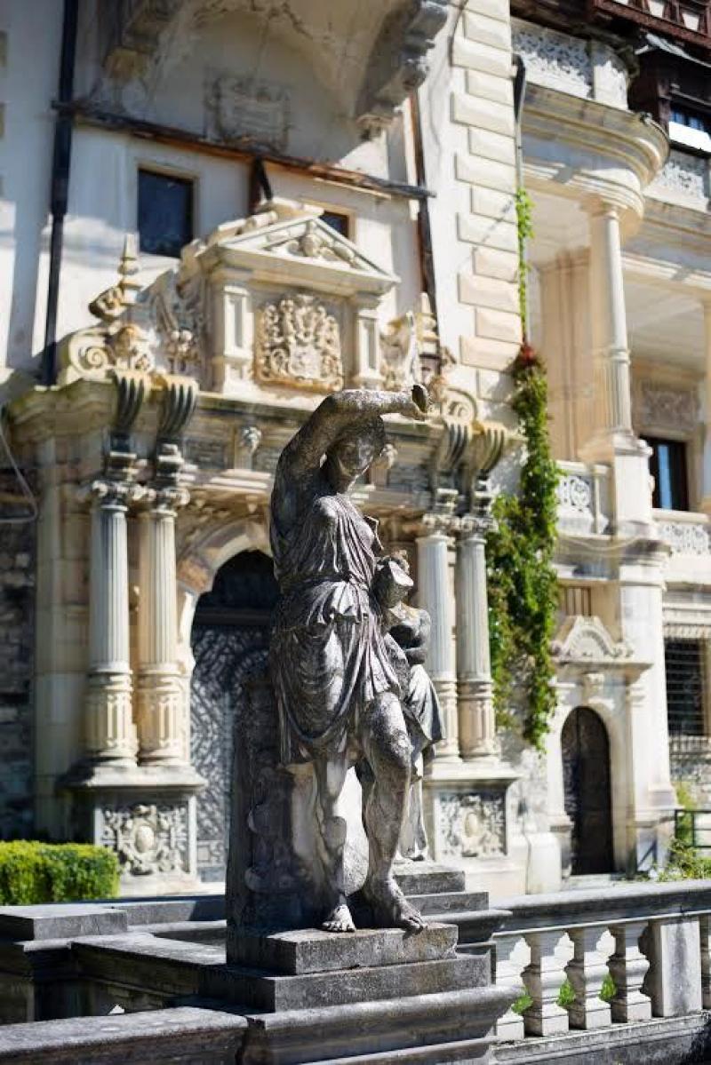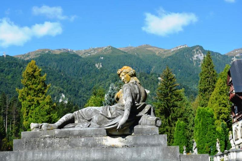 Avlunun ortasında para atılmış havuz da sadece metal değil, kâğıt paraları görünce Romen parasının plastikten yapılmış olduğu aklıma geliyor. Avrupa’nın diğer ülkelerinde de bizde de bunu yapmak mümkün değil, zira kâğıt paramızın suda aheste aheste yüzecek direnci kaç gündür bilemiyorum. Kalenin içine girmeden bahçede dolaşıp kalenin her bir yanına farklı bir görüntü veren heykelleri inceliyorum, hepsi sanki başka bir hikâye anlatıyorlar. Kalenin bahçesinden dağlara bakan I. Kral Carol’in heykelini ve Carrara mermerinden yapılan birçok heykeli, Raffaello Romanelli yapmış.