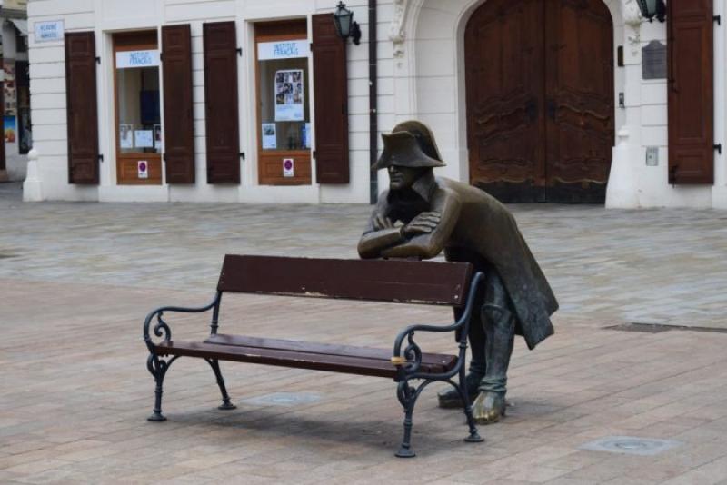 Bu heykellerden bir diğeri de Napolyon heykeli. Banka yaslanmış halde duran Napolyon heykelinin yapılış amacı ise 1805 senesindeki istilayı anlatmak.