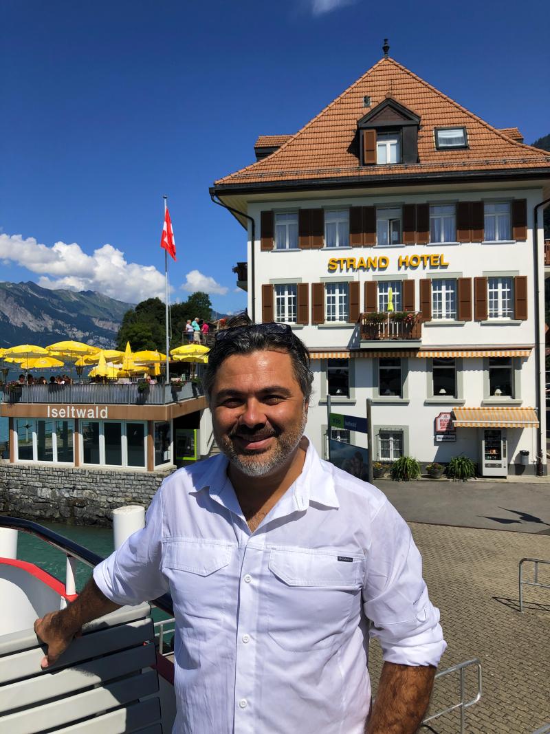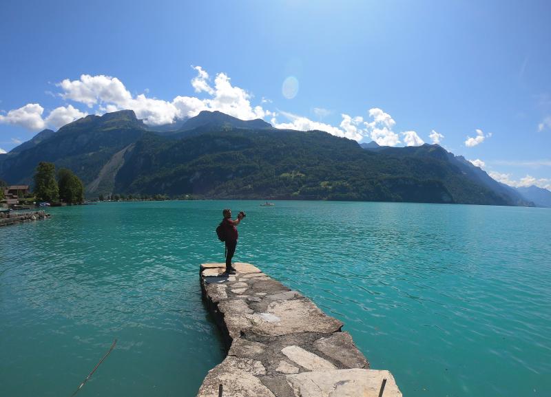 Biz Murat’la biraz göl kenarında dolaşıp, ahşap evleri ve minik iskeleden gölü ve göle fon oluşturan Grat ve Faulhorn dağlarını, gölün ayrılmaz unsuru olan kayıkçıları fotoğrafladıktan sonra artık merkeze doğru yürüyüp, Brienz Gölü’nde tekne turu için biletlerimizi almaya gidiyoruz.
