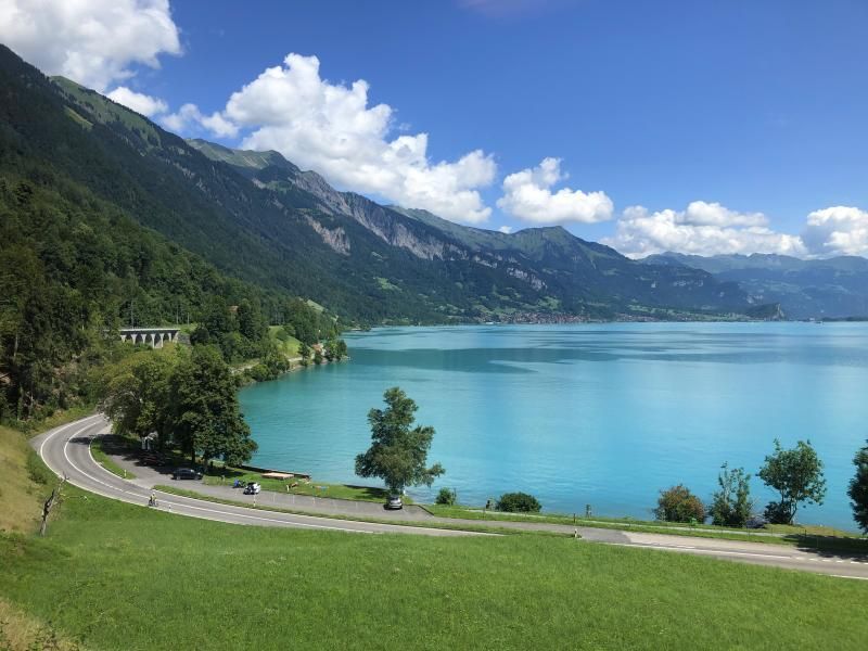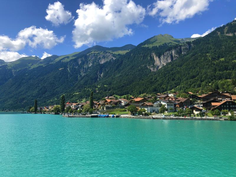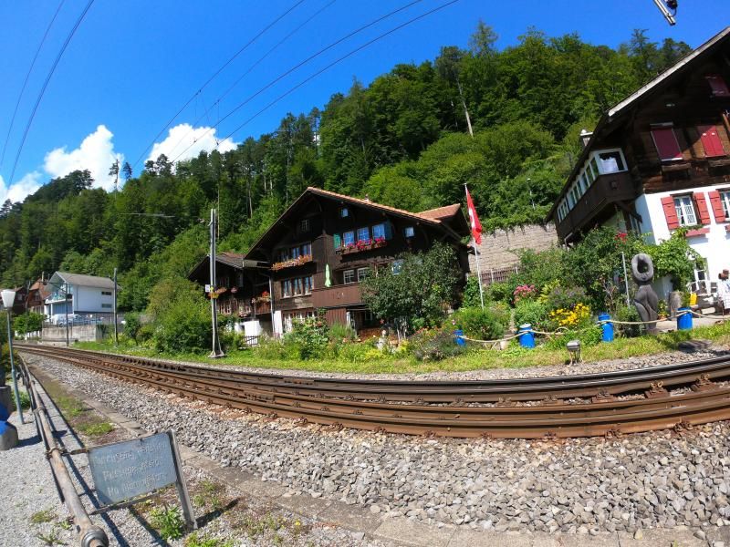 Burası bana Thun Gölü çevresi ile kıyasladığımda biraz daha el değmemiş, biraz daha kırsal geldi. Sanki Brienz Gölü çevresindeki yerleşimler Thun Gölü çevresindekilere göre biraz daha küçük. Gerçi küçük dediğime bakmayın, küçük ama her imkana da sahip demeliyim. Çünkü trenle göl kıyısı boyunca ilerlerken bazı evlerin önünde helikopter pistleri bile gördük.