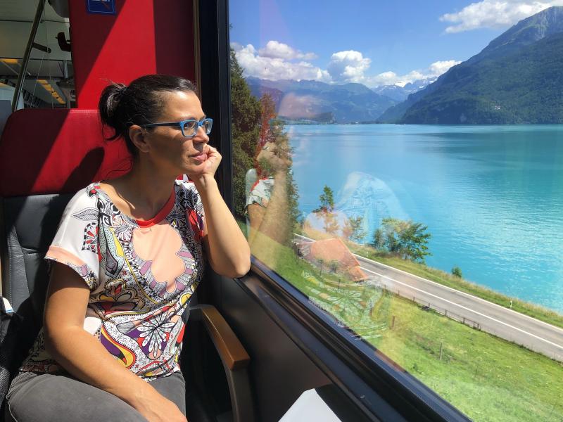 Biz Thun’da konakladığımız için önce trenle Interlaken Ost’a ulaştık. Oradan da başka bir trenle Brienz Gölü’nün en doğusunda yer alan Brienz kasabasına gittik. Öncelikle şunu belirtmeliyim ki, Brienz Gölü çevresinde ister tekne turu yapın ister trenle gezin, her ikisinden de çok etkileneceğiniz kesin. Biz gidişi trenle, dönüşü tekne ile yapmaya karar verdik. Trenle Brienz’e gidişte yol boyunca o kadar güzel manzaralar eşlik etti ki yolculuğumuza.