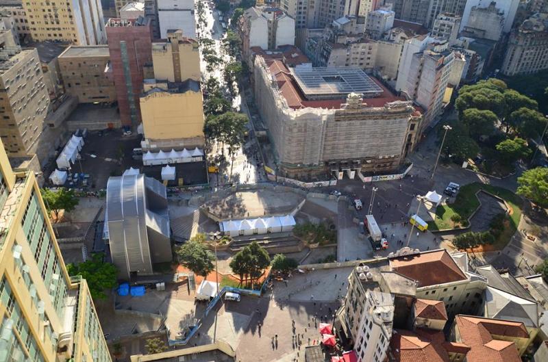 Hemen aşağıda FIFA Fan Fest alanı var. Burası maça gidemeyen Paulistasların toplaşıp maç izledikleri yer. Şehrin göbeğinde dev ekranda dünya kupası maçlarını seyrediyolar.