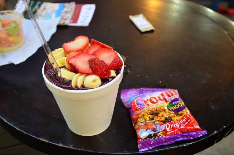Açai meyvesi Brezilya'nın kuzeyinde çok yaygın olan bir meyve. Bol miktarda A vitamin, kalsiyum, fosfor içeriyor ve enerji verici özelliği var. Özellikle Mercado bölgesinde gezinirken bir uğrayıp meyve suyu veya dondurma şeklinde tadabilirsiniz. Dondurma olarak aldığınızda yanında fistic ve müsli karışımı bir şeyler veriyorla. Gayet lezzetli. Bir yerlerden de beleş wifi bulursanız hayat size güzel işte =)