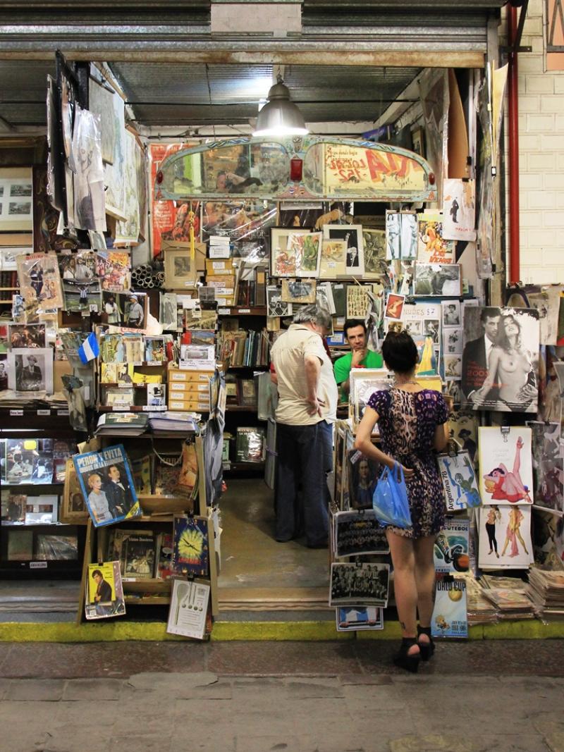 San Telmo’daki bir kapalı pazarda -Marcado de San Telmo- antikacıların arasında dolaşmak oldukça keyifliydi. Eski fotoğraf makinelerinden taş plaklara, vintage erotik kartpostallardan eski film afişlerine kadar pek çok şey sergileniyor bu dükkânlarda…