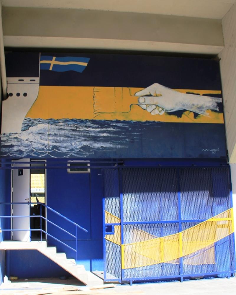 La Bombonera’nın duvarlarındaki resimlerden biri de takım renklerinin seçilme öyküsü… Bir zamanlar Boca Juniors’un renkleri siyah-beyazmış, fakat aynı renklere sahip olan bölgede bir takım daha varmış. İki takım siyah-beyaz renkler için maç yapmışlar. Fakat Boca Juniors maçı kaybetmiş. Bunun üzerine başkanları limana girecek ilk geminin renklerini takım rengi olarak seçmeye karar vermiş ve limana ilk giren de bir İsveç gemisi olmuş...