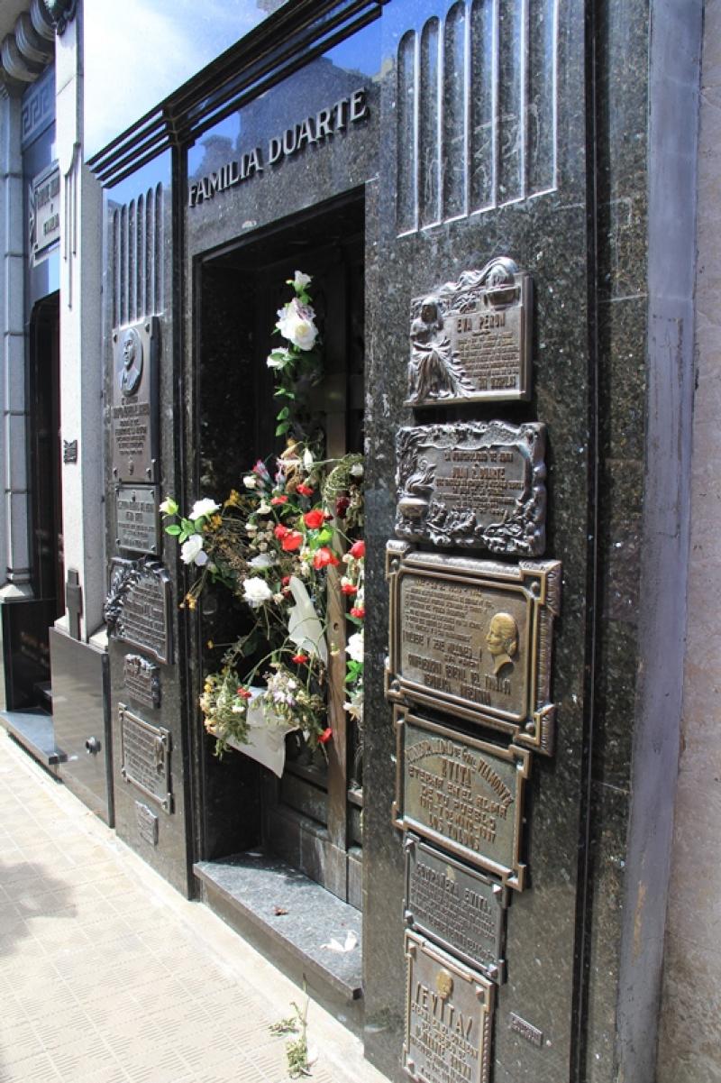 Bugünkü şehir turunun son durağı, ünlü La Recoleta Mezarlığı. Burası Arjantin’in önemli şahsiyetlerinin ve zenginlerinin oldukça gösterişli mezarlarının bulunduğu bir yer. Farklı mimari stillerde inşa edilmiş, heykellerle süslenmiş bir sürü mezar var. Birkaç eski Arjantin Devlet Başkanı, şairler, yazarlar ve bir hayli pahalı mezar yerlerini satın alabilecek kadar zenginlerin mezarlarının bulunduğu La Recoleta’nın şüphesiz en önemli konuğu Eva Maria Duarte de Peron, yani bildik ismiyle “Evita”.