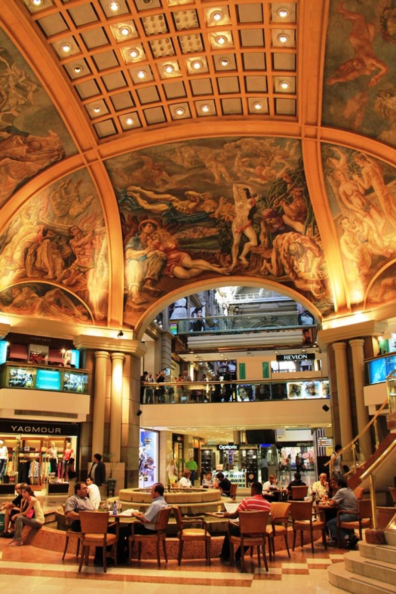 Corrientes Florida Caddesi’ni neredeyse tam ortasından kesiyor. Corrientes Florida kavşağından kuzey yönünde caddeye dalıp insan kalabalığına karışıyoruz. Birkaç blok ilerledikten sonra hedefimiz karşımızda; Galerias Pacifico…