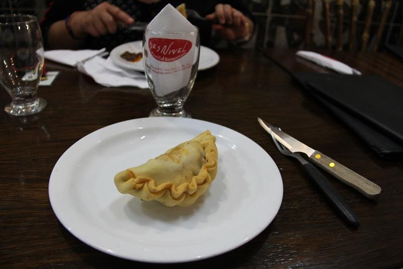 Önce başlangıç olarak Empanada geliyor. Seyahatimiz boyunca gittiğimiz hemen her restoranda başlangıç olarak yediğimiz Empanada, bizim çiğ böreğin benzeri. İçerisinde genellikle kıyma, biber, domates, soğan, paprika vs. var. Annemin çiğ börekleri kadar olmasa da oldukça lezzetli…