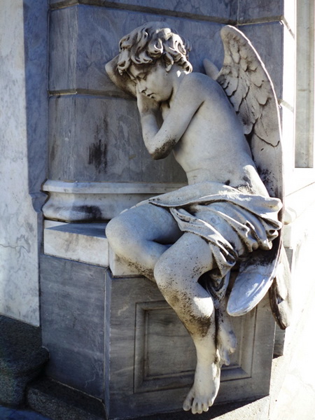 Aşağıdaki güzelim üzgün melek heykeli, Francisco Gomez aile mezarının duvarında oturuyor.