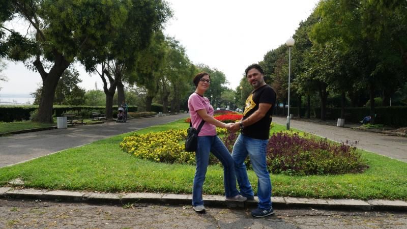 Burgaz’daki en keyifli yerlerden biri hemen deniz kıyısında boylu boyunca uzanan Sea Garden Park. Biz de konaklayacağımız yeri hem buraya hem de Burgaz’ın ana caddesinin kesiştiği yerde seçtik. Kiraladığımız ev hem çok konforlu hem de Burgaz’ın tam göbeğindeydi. Eve valizleri atar atmaz hemen dışarı çıktık. Şansımıza hava oldukça güneşliydi. Hatta eylül ayı olmasına rağmen halen denize girenler vardı.