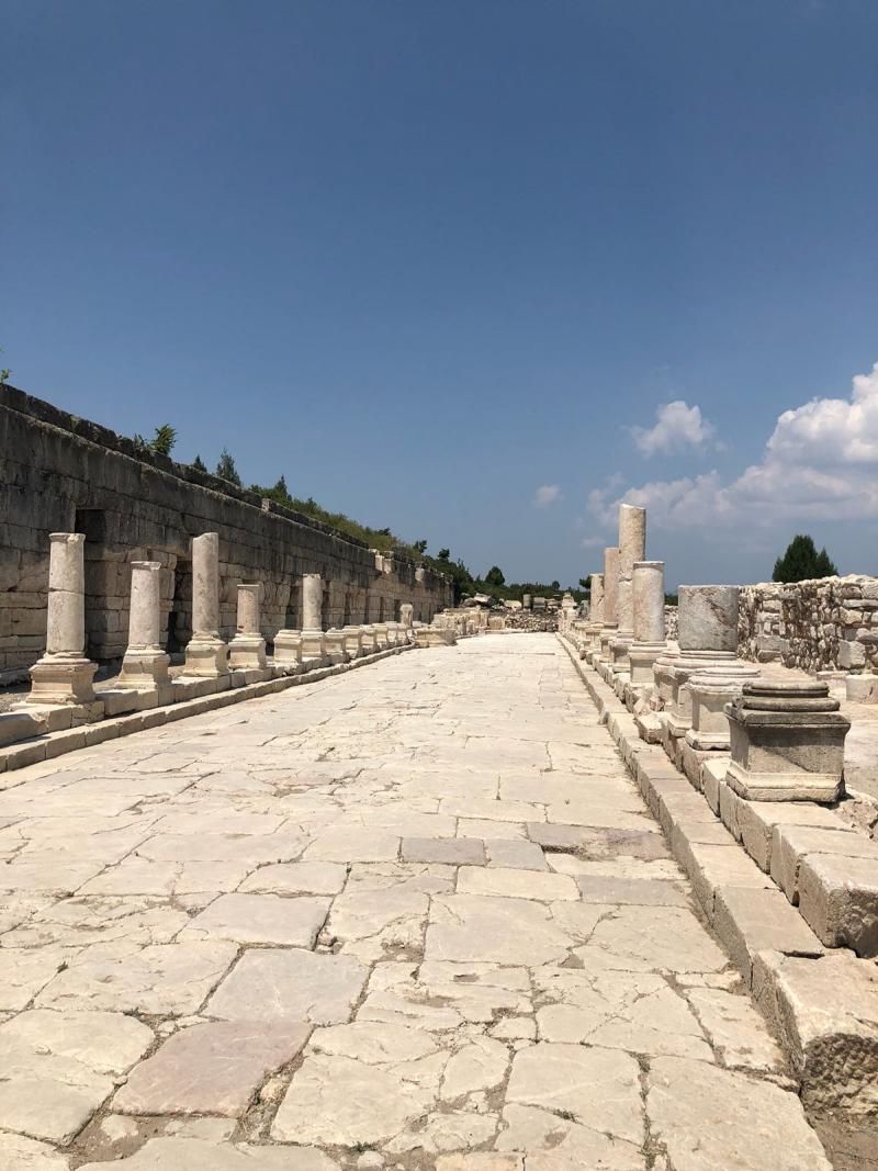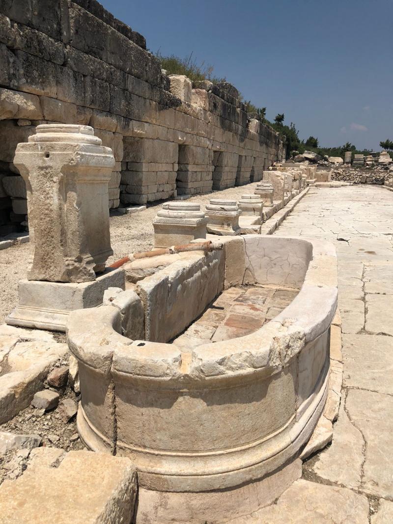 Yine Agora bölgesinde yürürken burada kurban edilen hayvanların kesildiği havuzları görüyoruz. Bu bölgede bazilika, hamam, gymnasium, Roma İmparatoru’nun 1.900 yıllık konutu ve 2.000 yıllık çeşme gibi yapıları görmek mümkün. Buradaki yapıların en önemli özelliği tamamının göl ve ova manzarasına sahip olması ve hiç bir yapının bir diğerinin manzarasına engel olmaması.