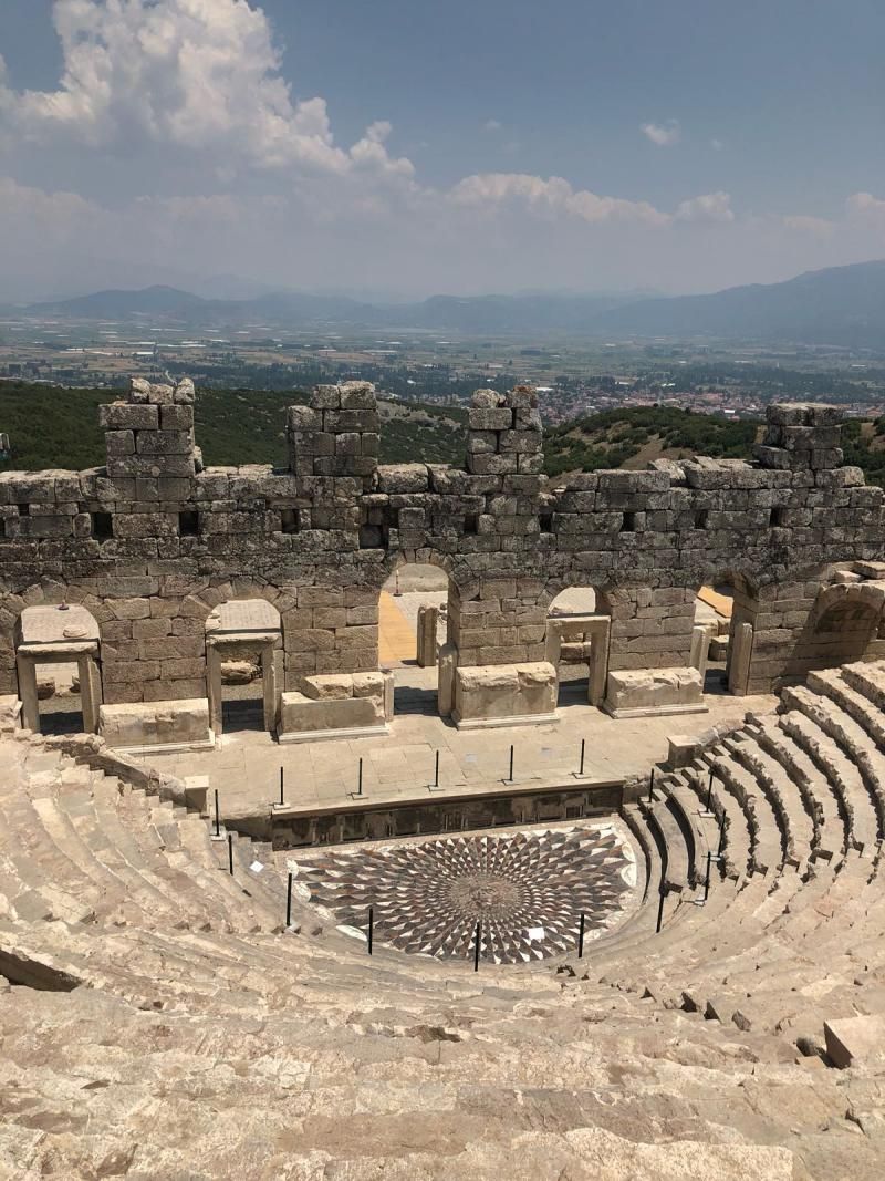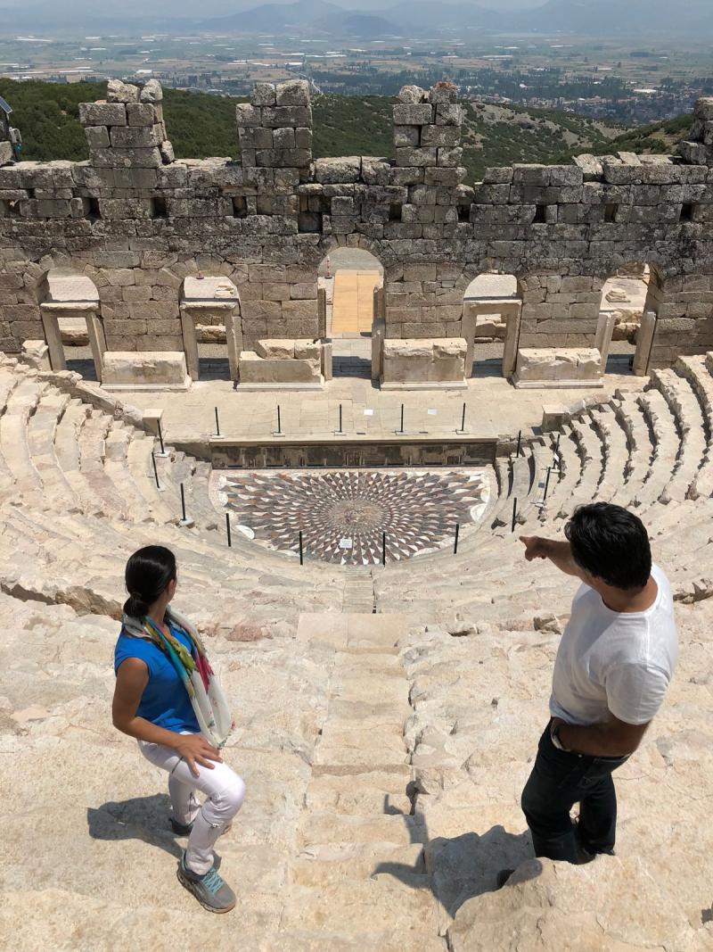 Antik Çağ Anadolusu'nun en görkemli eserleri arasında yer alan bu odeon tam 3.600 kişi kapasiteliymiş. Odeon sahnesinin tam merkezinde ise Anadolu’da eşi benzeri olmayan kırmızı, yeşil ve beyaz mermerlerden yapılmış olan Medusamozaiği yer alıyor. Medusa’nın hikâyesini bilirsiniz. Hani şu bakışlarıyla karşısındakini taşa çeviren yılan saçlı karakter.
