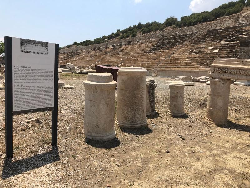 Açıkçası biz buraya gitmeden önce Kibyra Antik Kenti’nden bu derece etkileneceğimizi düşünmüyorduk. Aracı Antik Kent’in yamacına park ettikten sonra yokuş yukarı yürümeye başladık. Sol tarafta ilk gördüğümüz yapı devasa bir stadyum kalıntısı oldu. 12-13 bin kapasiteli bu stadyum, simetrik olarak düzenlenmiş bir yapı. Antik Çağ Anadolusu'nun en görkemli stadyumları arasında gösteriliyor.