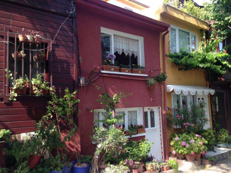 Ada evlerinden bir kısmı pansiyon, bir kısmı sezonluk kiralıktır. Ama hepsi birbirinden şirin, sıcak, huzur verendir. İnşaat yapmanın bu kadar zor olduğu bir yerde fazla yeni bina beklemiyorsun de mi?
