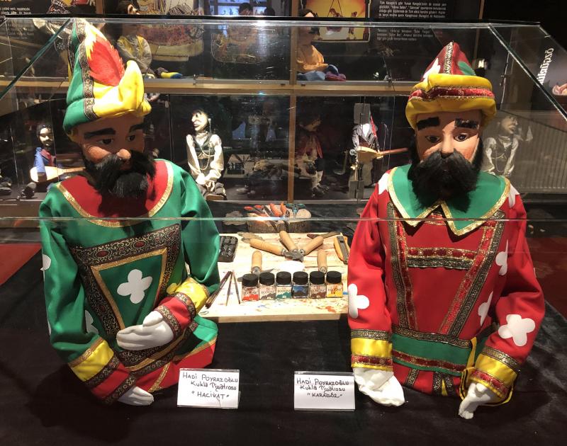 Zaman içinde çarıkların yerini deriden yapılma Karagöz ve Hacivat tasvirleri alır. “Bu tasvirler nasıl yapılıyor?” derseniz, o da yine müzede anlatılıyor. Deriler özel bir bıçak kullanılarak parçalar halinde kesiliyor. Kesilen deri parçalar kök boyalarla boyanıyor. Parçalar misina iplerle bağlanarak birbirlerine birleştiriliyor ve tasvirler son halini alıyor. Daha sonra bir kişi bu tasvirleri sahnede oynatıyor. Karagöz Hacivat oynatanlara ‘hayali’, perdeye ise ‘hayal perdesi’ deniliyor.