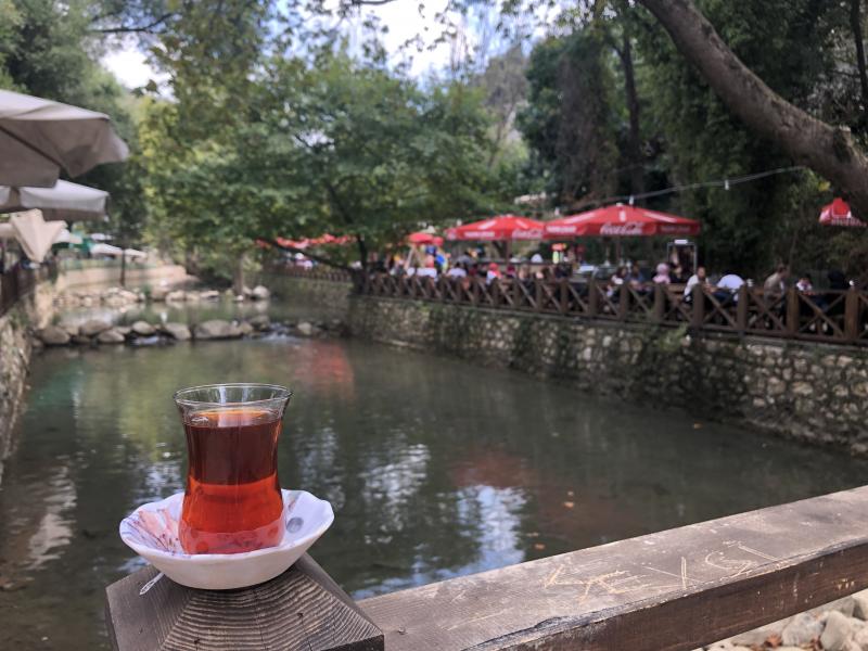 Biz de gezimizin sonunda soluklanmak için şöyle bir oturup birer taze çay eşliğinde yaz sıcağında serinliğin tadına vardık.