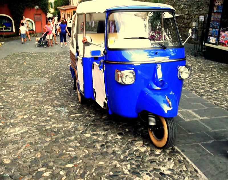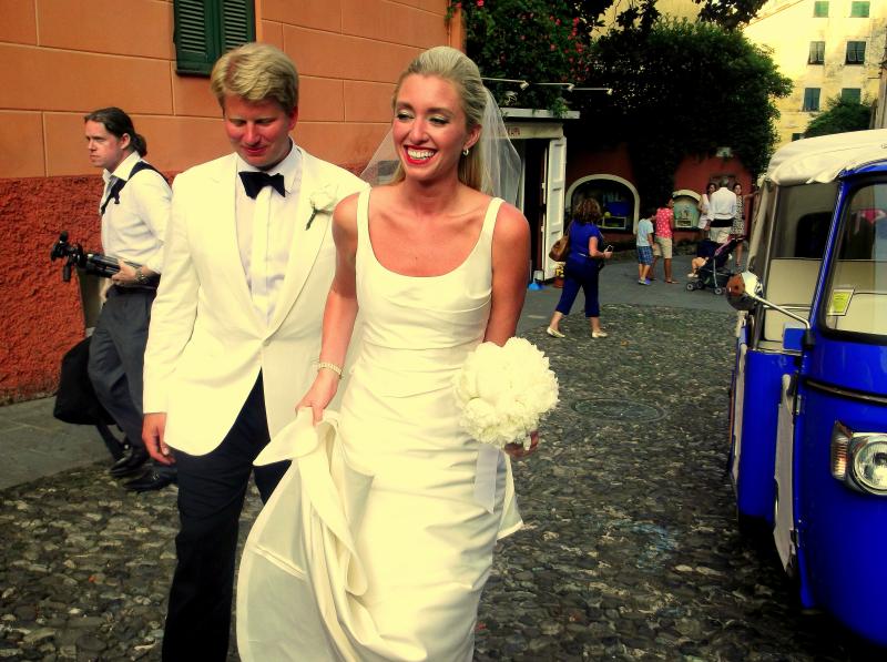 İşte sempatik çiftin Portofino sakaklarında kullandığı gelin arabası. Sanıyorum burada araba kullanmak yasak olduğu için böyle bir çözüm bulunmuş.