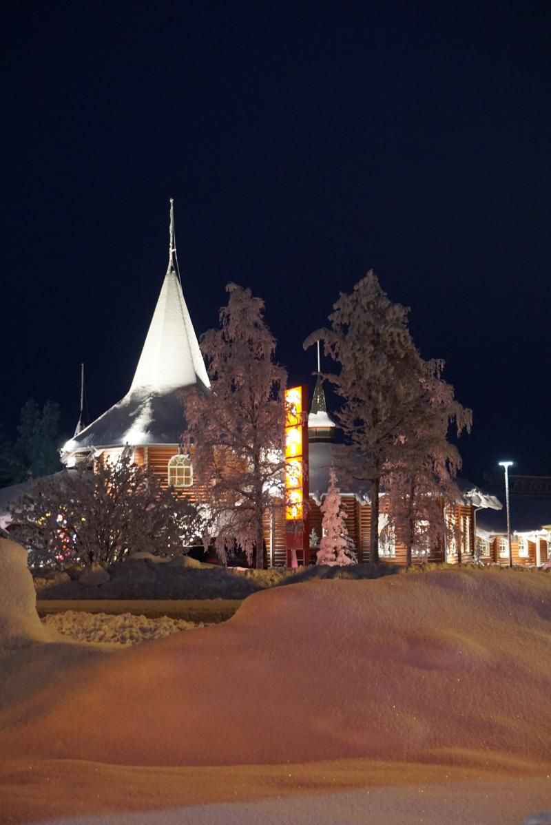 Rovaniemi’ye oldukça yakın olan köye yaklaştığımızda, uzaktan görüntüsü bile çok şirin bir köy olduğunu belli ediyordu ama içine girdikten sonra bembeyaz karlarla ve ışıklarla süslenmiş ağaçlar, çamlar, kütük evleri ile tam da Noel babaya yakışır bir köy diye düşündüm ve bayıldım. Burası elbette gerçek bir köy değil, kurgulamışlar ve Noel Baba evi, oteller, restoranlar derken tam bir turistik köy yaratmışlar.