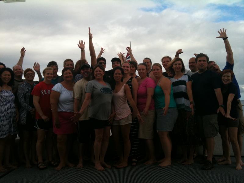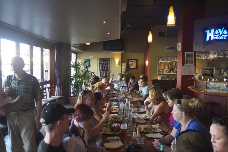 İndiğim gün, açıkta 5 gün geçireceğim teknemin demir alacak olması sebebiyle ekipmanlarımdan yoksun bir şekilde teknede birlikte dalış yapacağım diğer arkadaşlarımla tanışmak üzere önceden belirlenmiş olan şirin restorandaki hoş geldin kokteyline katıldım. Ağırlıklı olarak Amerika ve Avustralya vatandaşlarının oluşturduğu 19 kişi ile kısa sürede kaynaşıp, dalış anılarımızı paylaşmaya başlamıştık bile… Ara ara havaalanı şirketini arayarak çantam ile ilgili iyi bir haber beklerken ümidimi kaybettiğimde; çanta ile birlikte eksikliğini hissedebileceğim mayo, havlu ve tıraş takımlarımı en yakın marketten edinmeyi ihmal etmedim.