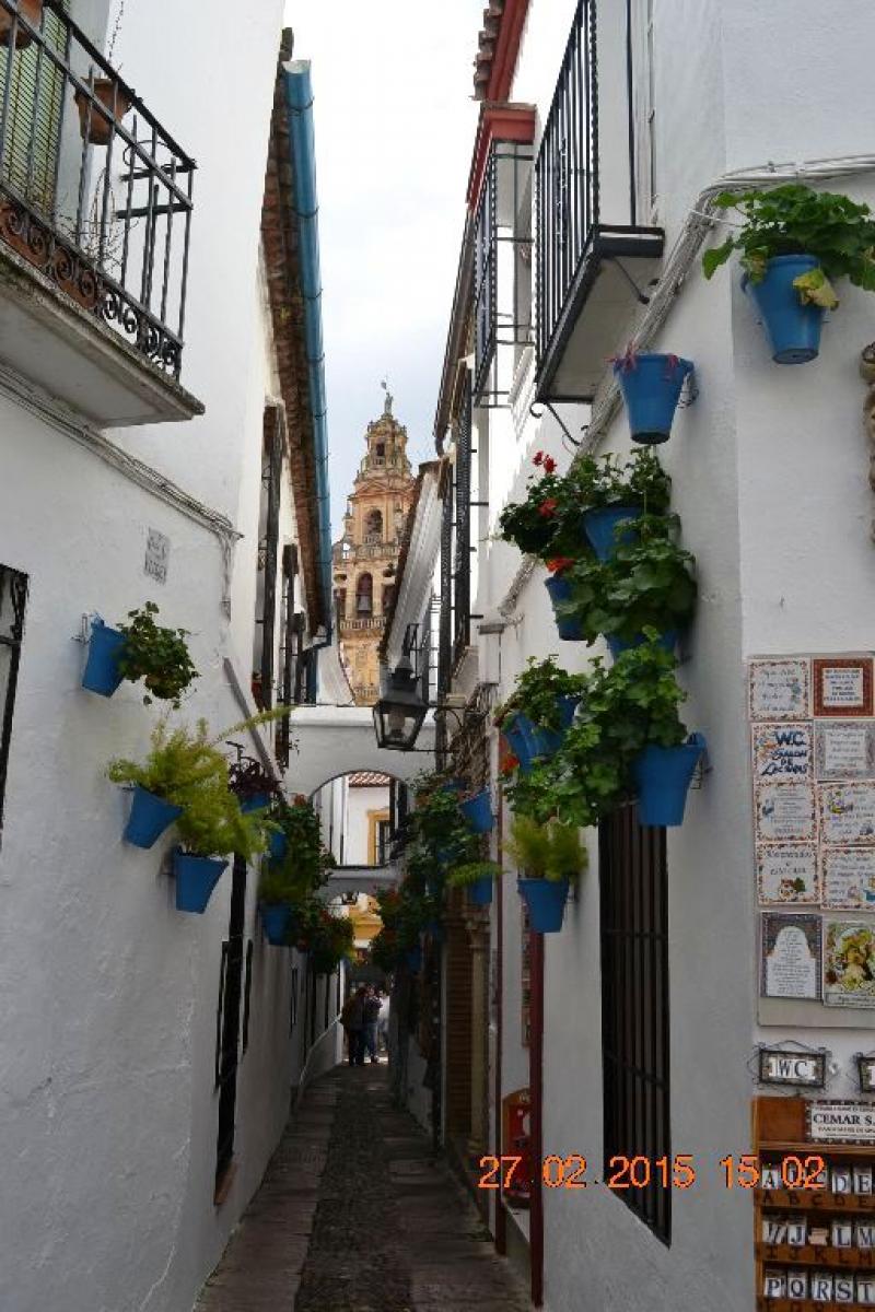 Şehrin tarihi merkezine ulaşmak için şehrin ortasından geçen Guadalquivir Nehri üzerindeki birçok köprünün birinden geçerek otelimize, ama biraz zor, ulaştık, zira sokaklar o kadar dar ki bir de tek yönler, girilmezler olunca ilerlemekte zorlandık. Gördüğümüz dar dar sokakların içine dizilmiş beyaz badanalı evler beni hemen kendine çekti. Otelimizi tarihi merkezde seçmiştim ama tam Cordoba Palas'ın karşısında olduğunu görünce pek hoşuma gitti doğrusu. Gerçi oteliniz tarihi merkez içinde olmasa da her yere yürüyerek ulaşmanız mümkün bu sevimli şehirde.