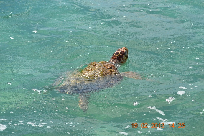 Daha sonra Carettaları görebilmek ümidiyle başka bir bölgeye geçiyoruz, sevimli su kaplumbağalar da bize oldukça cömert davranarak teknemizi ziyarete geliyor ve kafalarını çıkararak bize kendilerini fotoğraflama izni veriyorlar.