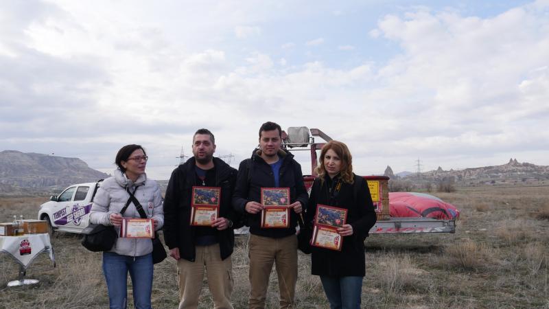 Yere indiğimizde herkese şampanya ikramı yapılırken aynı zamanda balon pilotu sizlere sertifikalarınızı takdim ediyor.