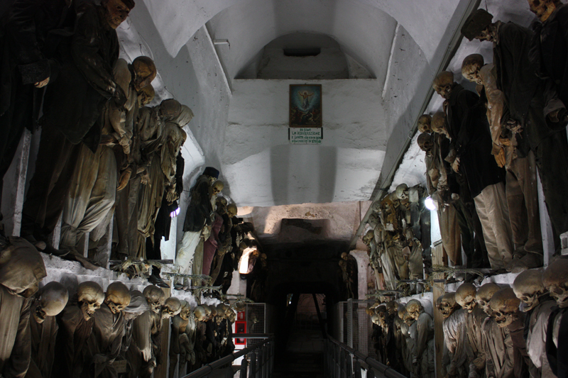 “Catacombe dei Cappuccini” olarak adlandırılan iskelet müzesi ve yer altı mezarlığı Sicilya’da görülmesi gereken en önemli yerlerden biri. Burası dünyanın en korkutucu müzelerinden biri olarak gösterilmekte.