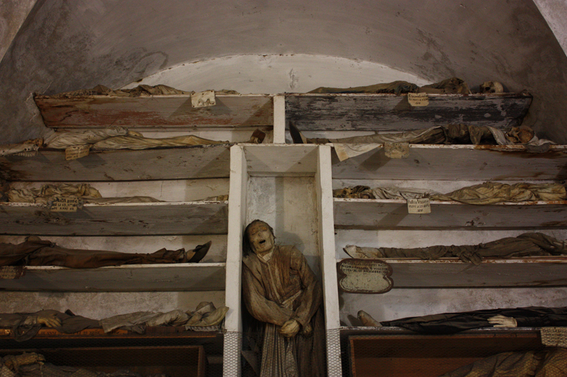 Buradaki mumyalama işlemi Sicilya’ya özgü. Ölenlerin vücutları önce Colatiolo denilen odalara alınıp, seramik borulardan üflenen sıcak hava ile kurutuluyor. Daha sonra sirke ile dezenfekte ediliyor. Rahiplere tören elbiseleri, keşişlere gündelik kıyafetleri, diğer aristokrat sınıfına da en şık ve sevdikleri kıyafetlerini giydiriliyor. Ardından burada duvardaki oyuklara boyunlarından ve ayaklarından asılarak yan yana diziliyorlar. Bazıları ise raflara yerleştirilmiş. Bir kısmı da cam tabutlara yerleştirilmiş. Burası dünyanın en korkunç 7 müzesinden biri.
