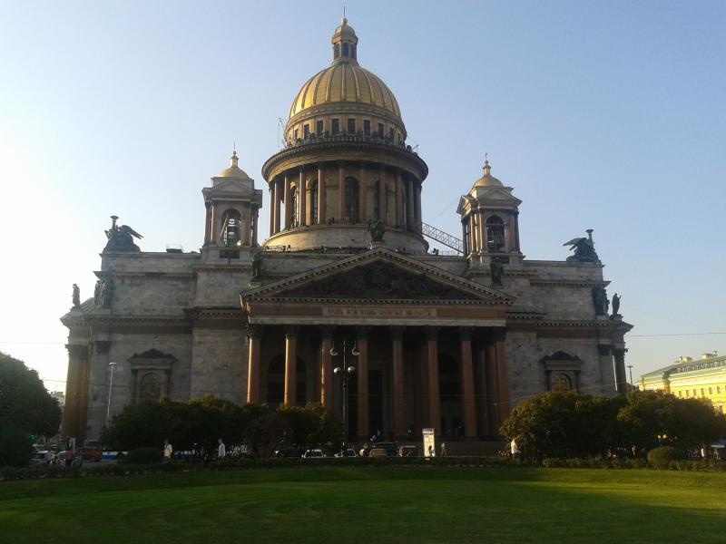 Müzeye en yakın gösterişli bina Donanma Binası'dır (The Admiralty); ancak halka kapalı o yüzden bizde şimdi St. İsaac Cathedral'ine doğru ilerliyoruz. St. İsaac Cathedral Petersburg'un en ihtişamlı binalarındandır. Günümüzde sadece özel günlerde dini törenler için kullanılıyor. Dünyanın en büyük kubbeli yapılarındandır ve bu kubbenin yapımında 100 kg altın kullanılmıştır. I. Pedro ve Katerina burada evlenmiştir. 300 basamaklı merdiveni tırmanmayı göze alırsanız, yukarıdan bütün şehri seyredebileceğimizi öğreniyoruz ama enerjimizi bunun için harcamak istemiyoruz. Katedralin terası, müze ya da her ikisi için bilet alabiliyorsunuz. Cathedral 250 ruble, teras 150 ruble, toplam 400 ruble. Ayrıca Audio-Guide (Türkçesi yok) 100 ruble. Katedralin önündeki meydanda (St. İsaac's Square) Nicolas heykeli de çok güzeldir. Heykelin yüzü katedrale dönükken arkasındaki muhteşem görünen bina Mariinsky Palace'dır. Ancak sadece uzaktan fotoğraflıyoruz. (Metro: Admiralteyskaya)