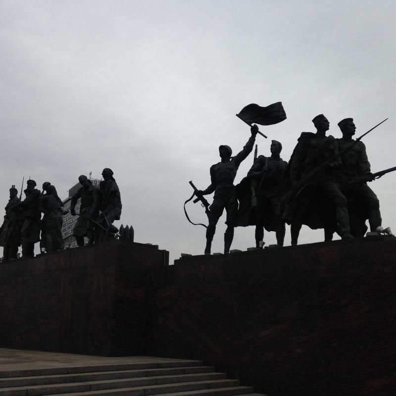Konakladığımız Park inn Pulkovskaya Otel'den sabah çıktığımızda çok ilginç heykelleri ile Zafer Meydanı (Ploschad Pobedy) dikkatimizi çekiyor. Nazilere karşı o zamanki adı Leningrad olan St. Petersburg'u savunan kahramanlar için yapılmış bu heykeller (Monument to the Heroic Defenders of Leningrad). Heykellerin alt tarafında ise bir sergi salonu bulunuyor. Giriş 120 ruble. (Metro: Moskovskaya)