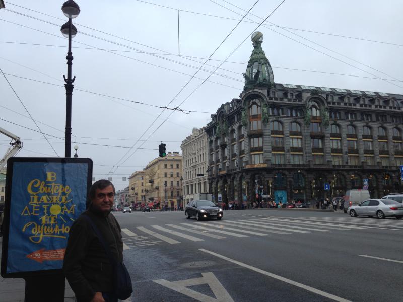 Meşhur Nevsky Prospeekt caddesindeyiz. bBurada önce Kazan Katedrali'ni (Cathedral of Our Lady of Kazan) ve karşısındaki meşhur dikiş makinası Sınger'in binasını (Singer Company Building) görmek istiyoruz. Kazan Katedrali bir Rus Ortodoks Kilisesidir. SSCB'nin yıkılışına kadar müze olarak kullanılmış, 1992'de ise tekrar kilise olarak hizmete başlamıştır. Karşındaki Singer Binası'nın mimari güzelliğinin yanı sıra giriş katındaki kitapçı da çok meşhurdur. (Metro: Nevsky Prospekt)