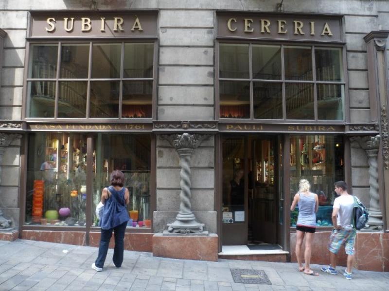 Merkezi yerlerden olan Katalunya Meydanı’nda iniyoruz ve sokak aralarındaki enteresan dükkânlara girip çıkıyoruz. İşte size birkaçından çektiğim fotoğraflar… Bu aşağıdakileri bitki zannetmeyin emi benim sevgili okuyucularım. Bunlar mum… Ama ne mumlar vardı o dükkânda. Size dükkânın da fotoğrafını göstereyim bari… Bakın fiyatları da üzerlerinde…
