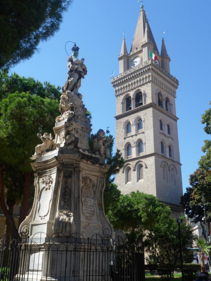 Şimdi buradan gezimize geriye sahile doğru devam ediyor ve Messina Katedrali’ne ulaşıyoruz. 12. yüzyılda yapılmış olan ve şehrin merkezinde bulunan 28 kolon üzerine kurulmuş olan bu katedral görülmeye değerdir. Biz buraya planlı bir şekilde yürüyerek öğlen saatinde ulaştık. Katedralin hemen yanında binaya bağımlı olan saat kulesinin de ayrı bir hikâyesi var. Bu kule üzerinde, 1930 yılında yapılan dünyanın en büyük astronomik saati vardır. Saat 12.00’de çalan bu saat, üzerindeki hareketli heykelcikleri ile Messina’nın önemli sivil ve dini olaylarını anlatmakta ve ayrıca ay hareketi ve güneş sistemini de tasvir etmektedir.