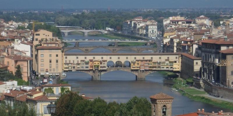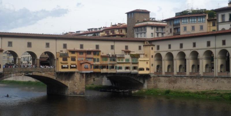(27) Vecchio Köprüsü ve bir adet selfie pozum: Arno Nehri üzerinde, II. Dünya Savaşı’nda Almanlar tarafından havaya uçurulmayan en eski tek köprüdür. 1345 yılında Vasari tarafından Cosimo I de’Medici için yapılmış olup şu anda üzerinde mücevher ve altın satıcılarının dükkânları bulunmaktadır.