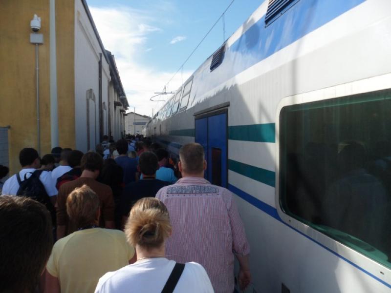 Sabah kahvaltımızı yaptıktan sonra erkenden limana çıkıyoruz ve önceden aldığımız bilgiye uygun olarak limandan 15 dakikalık bir yürüyüş sonrası Roma’ya gideceğimiz tren istasyonuna varıyoruz. Zaten yol sormanıza gerek yok. Millet kalabalık bir güruh halinde ne tarafa gidiyorsa o tarafa yönelin doğru yere gelirsiniz… Bu limanda, gemideki yolcuların gezme tercihleri için şöyle bir istatistiki sonuç gözlemledim… Yolcuların % 10-15’i gemide kalıyor (geziye yemek, dinlenmek, kitap okumak için gelenler), % 10-15’i Civitavecchia kasabasında kalıyor (sakin bir gün geçirmek isteyenler ve daha önce Roma’yı defalarca görenler), % 20’si geminin turları ile rahat ve riske girmeden Roma turuna katılıyor (yaşlılar, lisan bilmeyenler ve zenginler), geriye kalan % 50’si de tren ve taksi ile kendi başına Roma ve Vatikan’ı gezmeye gidiyor (bunlar daha çok gençler, daha az paraya daha çok yer görmek isteyenler ve yürüyen maceracılar)… E hal böyle olunca bu demektir ki Roma trenine 1000’den fazla kişi binecek… 20 dakikada bir tren geleceğini varsayarsak, biraz itiş kakış da olsa kısaca yarım saate kadar bineriz. Evet, öyle de oldu. 40 dakikalık bir yolculuktan sonra Roma’nın Vatikan’a yakın olan istasyonu San Pietro’da kalabalığa uyarak indik ve elimizdeki 18 €’luk biletle yine kalabalığı takip edip orada bekleyen belediye otobüsüne atlayarak, hop 10 dakikada Vatikan’a ulaştık.