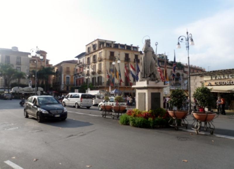 Sorrento, Avrupa sosyetesinin de rağbet ettiği çok hoş bir kasaba… Meşhur Amalfi Kıyısı’nın kasabalarından bir tanesi… Efsanevi denizkızlarının ıslıkları ile Odysseus’u kayalıklara çağırdığı yer burası, denizkızlarının evi Sorrento… Hemen karşısında da zenginler cenneti Capri Adası… Buranın her sokağını dolaşmak ayrı bir keyif… Çiçeklerle donanmış evleri… Sokaklarının arasına serpilmiş çok cici dükkânlarından alışveriş etmemeniz ise mümkün değil. İstasyonda inince 10 dakikalık bir yürüyüşle merkez meydana (Piazza Tasso) geliyoruz.