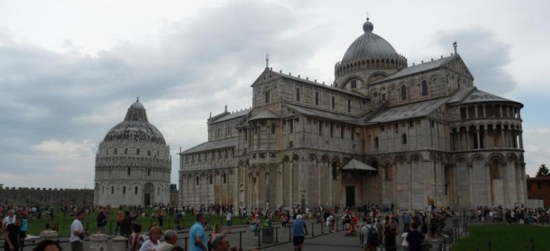 Gemimiz Carnival Breeze ile yanaştığımız Livorno Limanı’ndan, kiraladığımız taksimiz ile yaptığımız Floransa turumuzun ardından, dönüşte Pisa’ya uğradık. Taksi şoförümüz bize Toskana vadisindeki 45 dakikalık bir yolculuktan sonra Pisa kasabasını gezdirdi. Surlarla çevrili Pisa’nın bu tarihi eski şehrine ve tarihi Duomo Meydanı’na, 2 numaralı kapıdan girerek; Katedral, Vaftizhane, eğik çan kulesi ve muhteşem mezarlık binasının bulunduğu Mucizeler Meydanı (Campo dei Miracoli)’na geldik. 3 saat sonra aynı yerde buluşmak üzere randevulaştık. İlk olarak hemen karşımıza çıkan ve yapımına 1174 yılında başlanan, daha sonra da eğilmeye başlayan çan kulesi ile Pisa tarih gezimize başladık.