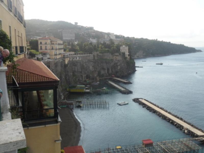 3 saatlik şehir turumuzun sonunda, gemimize yetişmek için Napoli’ye doğru geri dönüşe geçtik. Esasen buradan feribot ile yarım saatlik bir yolculuk sonucu Capri veya Ischia adalarına, oralardan da saatlerinizi uydurabilirseniz Napoli’ye geri dönebilirsiniz. Ama Sorrento’da deniz kıyısındaki uçurum misali kayaların üzerindeki teraslardan aşağıya bakmak, uzaktan Capri Adası’nı ve denizin üzerinden güneşin batışını izlemek de ayrı bir keyifti.