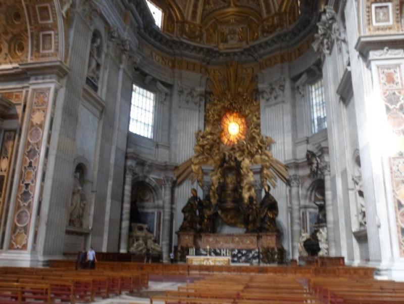 Sabahın erken bir saati olduğu için her yer sakin ve tertemiz… St. Peter’s Bazilikası’na girmek için fazla bir kuyruk yok ve 10 dakikalık bir bekleyişten sonra işte kilisesinin içerisindeyiz… Vatikan’ın dünyanın en zengin devleti olduğunu ve Papa’nın da burada yaşadığını göz önünde bulundurursak bu küçücük ülkenin ayrı bir dünya olması normal…