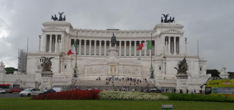 Sonrasında haritamıza bakarak yönümüzü, 1885 yılında yapımına başlanan ve tamamlanması 40 yıl süren Venezia Sarayı ve Müzesi ile meçhul asker anıtının bulunduğu ve Roma’nın merkezi sayılan Venezia Meydanı’na çeviriyoruz. Burası, muhteşem görüntüsü ve etkileyici manzarası ile benim sevdiğim yerlerden biri… Bir zamanlar Mussolini’nin konuşmalarını yaptığı meşhur balkona çıkınca; sarayın önündeki Birleşik İtalya’nın ilk kralı Victor Emmanuel’in anıtı bütün haşmetiyle sizi selamlamaktadır. Ama dikkatinizi, sarayın tepesinin iki kenarında bulunan atlı arabalı Romalı askerlerin heykellerine çekmek isterim…