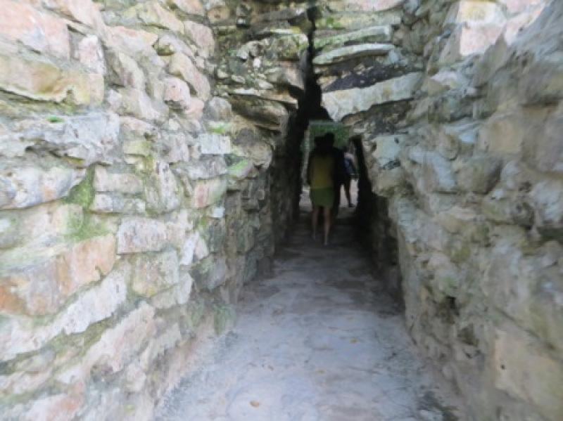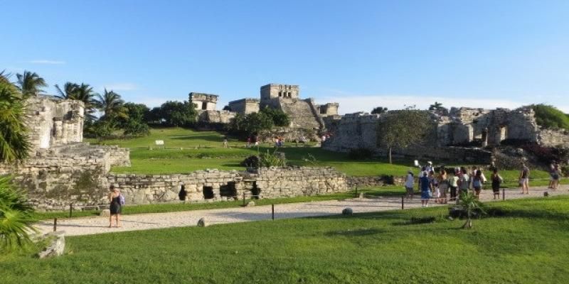 Şimdi gelelim gözlemlerime… Tulum çok iyi korunmuş ve bilhassa her taraf yemyeşil çim olduğu için, burayı gezmek keyif veriyor. Rehberimiz Pamela’nın 1 saatlik anlatımı esnasında, en iyi korunan yerin tapınak binası olduğunu gördük. Bütün yaşanmış binaların etrafı, ip bir çit ile çevrilmiş ve harabelerin üzerine çıkmak yasaklanmıştı. Tabii bazı işgüzar turistlerin bu harabelerden evlerine numune götürme çabası, yetkililerce fark edilince herkes için böyle bir önlem alınmış. Doğru tabii ki… Bizim ne değerlerimiz gitmiş de farkında değiliz. Mesela ilk aklıma gelen; Marmaris’teki Kleopatra Adası’nın meşhur kumu ne kadar da azaldı.