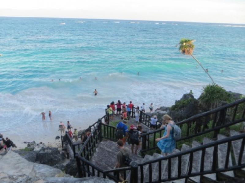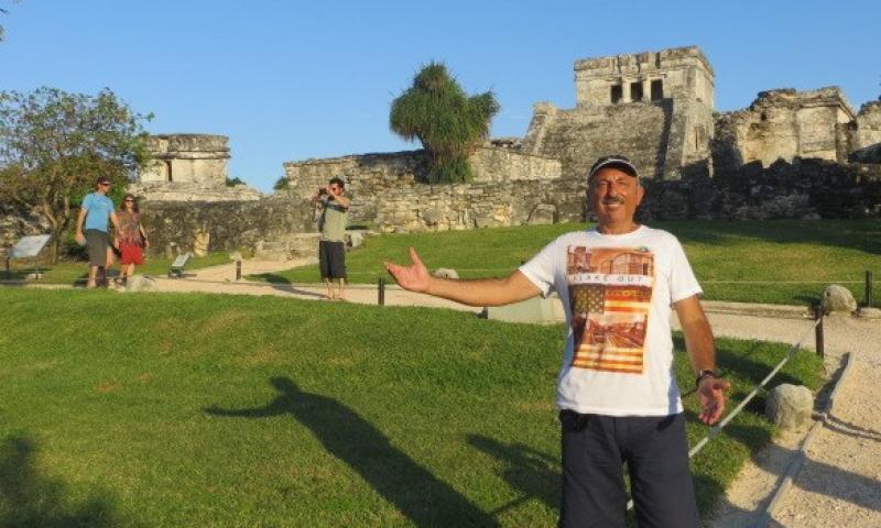 Carnival Victory gemisi ile Cozumel Adası’na öğle saatlerinde yanaştık. Zamanımızın etrafı tanımak için kısıtlı olmasından dolayı, 2 gün evvelinden gemide programımı yapmıştım. Hem Maya tapınaklarını görmek ve medeniyetlerini şöyle azıcık ucundan tanımak hem de buralarda bir deniz sefası yapmak için Tulum turunun bize uygun olduğuna karar vermiş ve bu turu kişi başı 100$ vererek geminin tur ofisinden rezerve ettirmiştim. Bu turu kendi başıma daha ucuza yapabilirdim. Ancak Cozumel’den 45 dakikalık bir deniz yolculuğu sonrası ana karaya ulaşmak, oradan da 1,5 saatlik bir kara yolculuğu sonucu Tulum’a varıp gerekli bilgilerle gezmek, denize girmek ve akşam 21.30’da kalkacak olan gemimize zamanında yetişmek riskini taşımak ve bütün gün bunun stresi ile gezmeyi istemedim. Kendimi geminin tur rehberine teslim ettim. Ne de olsa geminin turunda herhangi bir aksilik olsa bile gemi sizi beklemek zorunda, ama kendi başınıza olunca böyle bir lüksünüz yok. İyi ki de böyle yaptık, rahat ve keyifli bir gün geçirdik. Ama yine de söylüyorum, eğer vaktiniz varsa Coba veya Chichen Itza (Çeçenitza) harabelerini de görmenizi tavsiye ederim. Coba’da ayrıca piramidin üstüne kadar çıkabiliyorsunuz ve etrafındaki yağmur ormanlarına tepeden bakabiliyorsunuz!