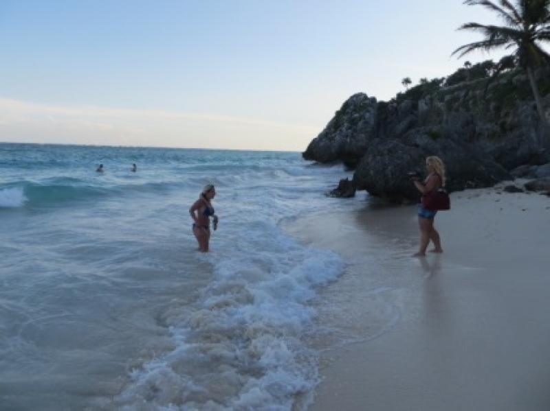 Burası yüzmek, güneşlenmek ve su sporu aktiviteleri için ideal bir yer… İşte size 2 fotoğraf da buradan aktarıyorum; parasailing yapan turistler ve bizim ülkemize yabancı olmayan plaj manzaraları… Burasını şöyle bir dolaşıyoruz ama bize hitap eden bir şey bulamıyorum. Çünkü bizler Türkiye’mizde bunların daha güzellerine alışığız… Ama Maya tapınakları ve sualtı canlıları ile mercan kayalıkları, buraya gelmişken görülmeye değer yerler diyerek; bu bölüme de son veriyorum.