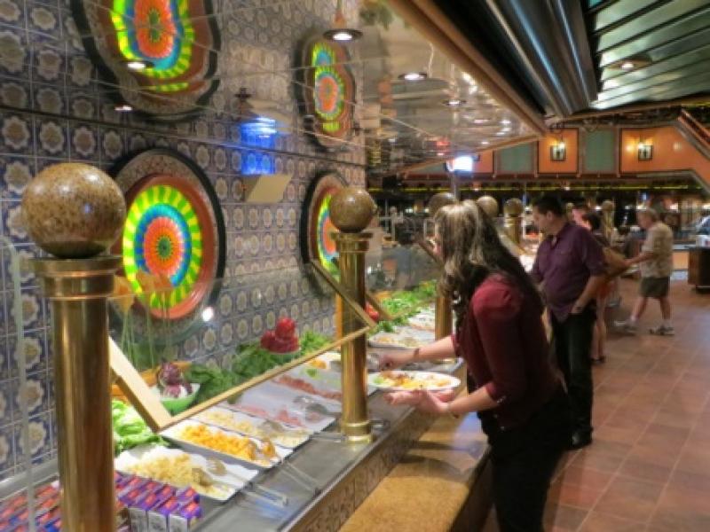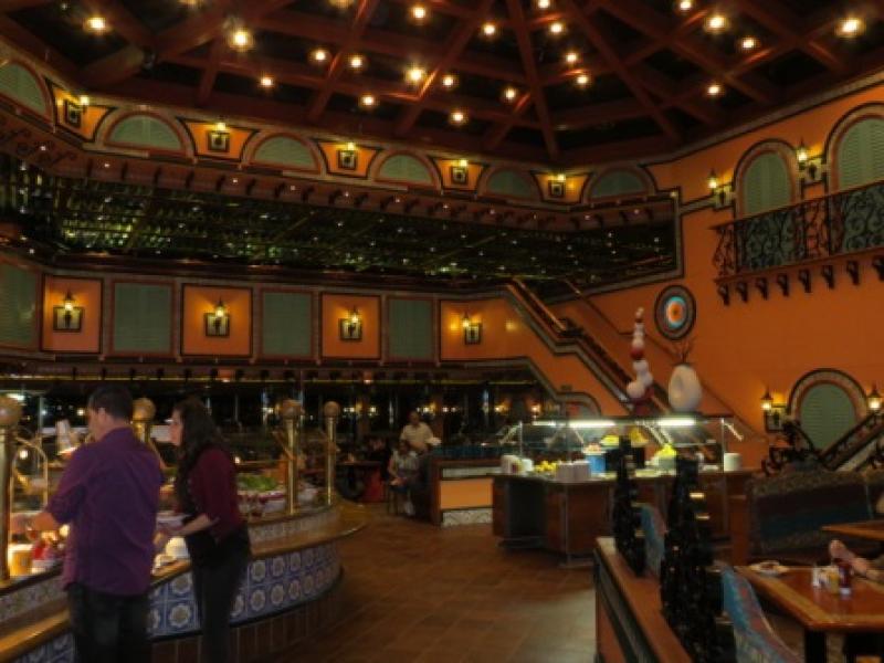 Yaşına bakın ama esas ne zaman elden geçirilip, dekorasyonunun da yenilendiği önemli… Gemiye ilk girdiğimizde MSC gemilerinin o kendine has zarafet ve nefis parfüm kokusu yok. Daha çok Amerikan tarzını yansıtan abartılı renkler, ışıklar, geniş oturma gurupları ve iki şişman insanın yan yana geçebileceği genişlikte koridorlara sahip… Tabii odalar da ona göre geniş ve ferah… Yemekler bol ve lezzetli… Günün her saati yiyebileceğimiz bir açık büfe bulabiliyoruz.