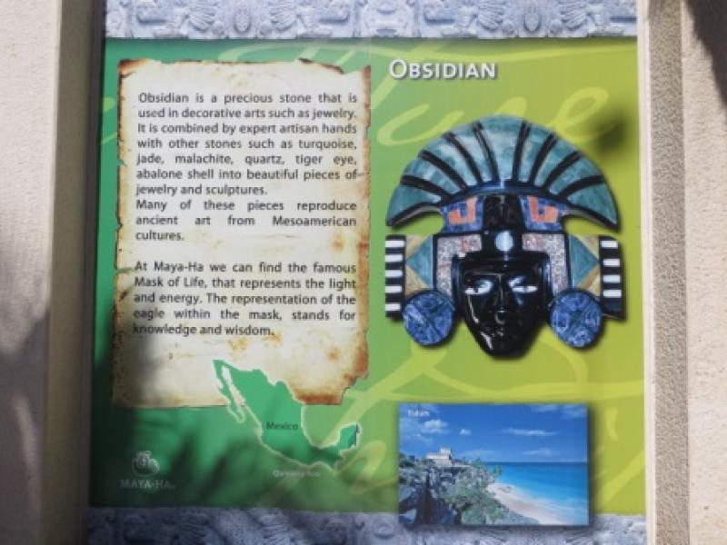 Ana karadaki ilk durağımız Playa del Carmen oldu. Plajları ve yazlık mekânları ile meşhur olan bu tatil beldesi, bizim tatil beldelerimize benziyor. Etrafa şöyle bir göz gezdirdikten sonra bizi bekleyen tur otobüsümüze bindik. Rehberimiz tatlı bir Meksikalı bayandı; işini biliyor, durmadan konuşuyor ve Meksikalıların da bizler gibi sevecen ve turist dostu olduğunu anlatıyordu. Çevre ile ilgili bilgiler verirken bir taraftan da 1,5 saatlik yolculuğumuzun yarı yoluna gelmiştik ki turistik bir mağazada mola verdik. Burasının; Meksika’da çıkan ve güneşi görünce altın rengini alan, Mayalardan beri gündelik hayatta ve törenlerde kullanılan ve şimdi de süs eşyaları ve biblo yapımında kullanılan gerçek siyah Obsidian volkanik cam taşının üretim ve toptancı mağazası olduğunu anlattı. Bu taş güneş ışığını görünce altın rengini aldığından, hatta buraları fetheden İspanyollar tarafından içerisinde altın olduğu zannedilip çok kıymetli olarak değerlendirilmiştir.