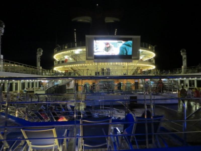 Hele o hamburgerleri! Aman ya rabbim! Kocaman, yağlı ve içine istediğiniz her şeyi doldurabilirsiniz; ama bir o kadar da lezzetli oluyor kerata… Her dakika bir anons ve şamata ve havuz başı müzikli şovları, partileri ile bu gemi çok eğlenceli… Havuzlar dolu ve güvertede şezlong bulmakta zorlanıyorsunuz. Niye, çünkü burada sezon dışı diye bir şey yok ki… Her daim gemiler kalabalık… Ama sakin zamanı yok mu? Tabii ki var. Mesela herkes içeride eğlenirken sakin sakin güvertede açık hava sinemasında o günün filmini seyredebilirsiniz. İçkinizi veya çayınızı alıp mehtaba veya ufka doğru hayaller kurabilir ve bu gemide olmakla ne kadar şanslı olduğunuz konusunda düşünüp Allah’a şükredebilirsiniz. Amerikalı yolcular gündüz dışarıda, gece ise içerideki barlarda canlı müzik olduğundan çoğu eğleniyor ve içiyorlar… Ama etrafa zarar verenini hiç görmedim. Bir de Amerikalılar bence gayet nazik insanlar… En ufak bir yan bakış yahut dokunmada hemen özür diliyorlar ve birbirlerine yol vermede veya sıra vermede gayet medeniler… Biz Türklerin buralarda öğreneceği çok şey var.